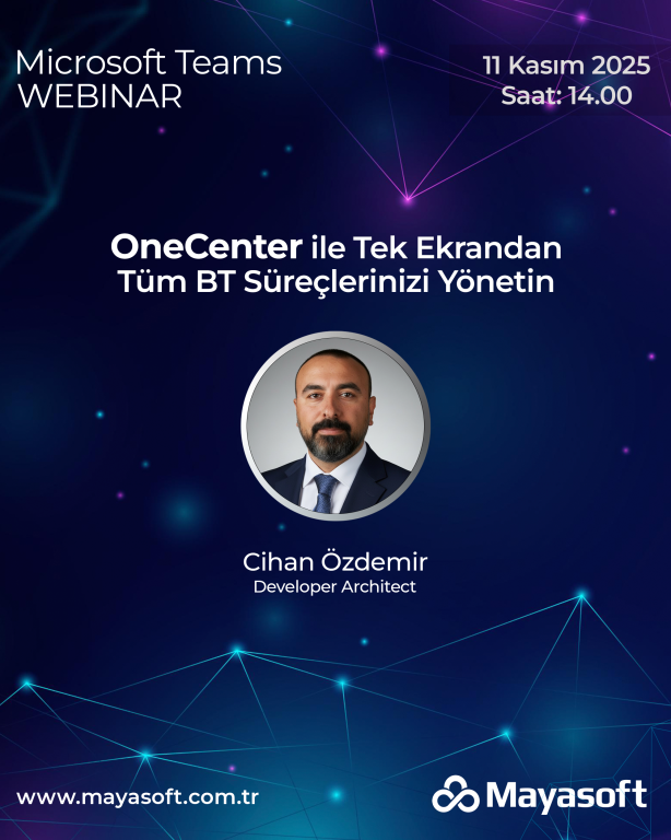 OneCenter ile Tek Ekrandan Tüm BT Süreçlerinizi Yönetin webinarımızda, tamamen yerli kaynaklarla geliştirilmiş platformumuzun gücünü ve BT operasyonlarınızı nasıl merkezi bir yapıya kavuşturabileceğini keşfedeceksiniz.
